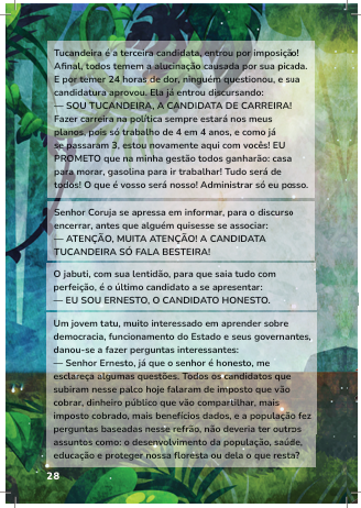 *Ana Cristina Moreira é Amazonense, do Município de Itacoatiara, Servidora Pública e Estudante de Ciências Políticas. Democracia na Floresta é a materialização da experiência materna da autora com o ensino ilustrativo, alegórico e literário, método com o qual obteve êxito ao estimular o interesse e a compreensão de seu filho portador de Tea e Dislexia.