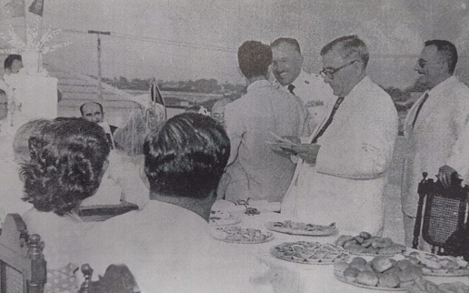 Formaram em derredor da custosa e florida passarela, em uniformes de gala, como guardas de honra, praças dos Bombeiros Voluntários de Manaus e da Polícia Militar do Estado. No portão principal, além do Exmo. Sr. Governador do Estado, secretários, o Ministro das Relações Exteriores e o Embaixador de Portugal, aguardando o ilustre visitante, encontravam-se os Corpos Dirigentes, a Comunidade das Filhas de Sant’Anna, o Corpo Clínico e os escalões de Enfermeiras e demais auxiliares do hospital.
