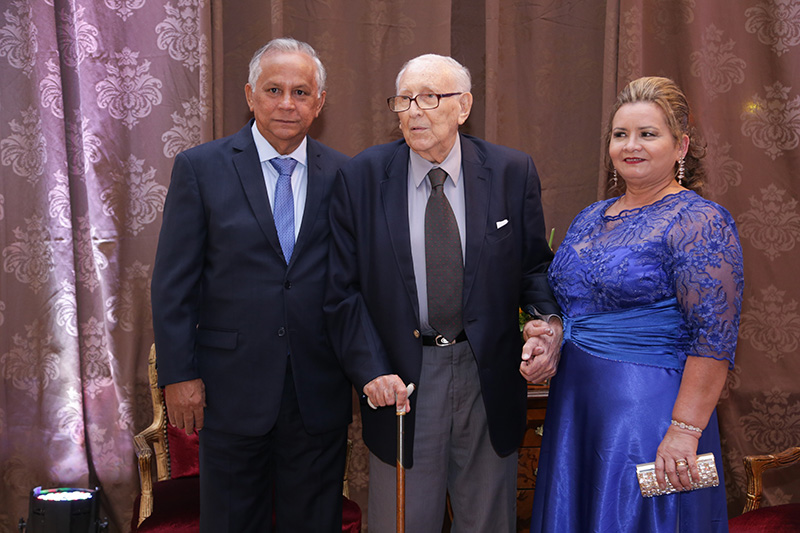 Moysés Israel, ladeado por Francisco Gomes da Silva e sua esposa Fátima, no Clube Dulcila’s em Manaus, na noite de 29/11/2015, data de comemoração dos 70 anos do nosso historiador.