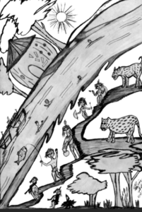 De dentro das águas do lago, que era o próprio Surumu, quando ele ainda não era rio, saíram duas onças: Uruturu e Uairirima, que estavam famintas e agitadas.