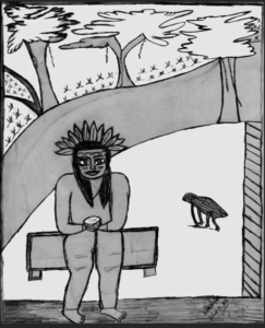 Nos campos do Surumu mora a jia, que é conhecida por todos, porque tem um calo às costas, feito quando carregou o banco de pedra do pajé que já era bem velho.