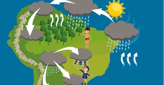 A repórter do tempo explica que os rios voadores têm origem no Oceano Atlântico. Voam pela Amazônia e descem para o Sudeste. Pelo que eu entendi, os tais rios voadores vão desaguar lá pelo Sudeste. Quer parecer que alagações frequentes no Rio de Janeiro, Minas Gerais e Espírito Santo acontecem nesta época do ano devido aos rios voadores. Pouco entendo de Meteorologia, mas se eu estiver errado, por favor me corrijam.