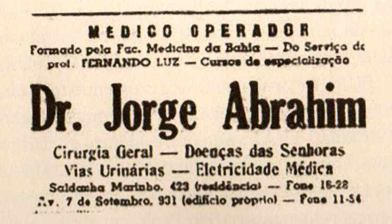 Propaganda do Doutor Jorge Abrahim. Fonte: Jornal do Commercio, Manaus, 13 out. 1957.