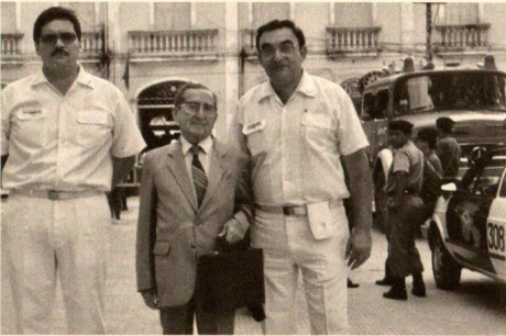 Doutor Antônio Hosannah, entre os Oficiais Médicos da Polícia Militar do Amazonas, Aristóteles Alencar e Isaac Dahan, em solenidade do Serviço de Saúde, abr. 1993. Acervo do autor.