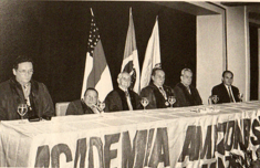 Dr. Aristóteles Alencar, Doutor José Maria Santana, Doutor Walter Góes, Doutor Cláudio Chaves, Doutor Ernani Correa e Doutor Francisco Tussolini em solenidade na Academia Amazonense de Medicina em 27.6.2003. Acervo da família.